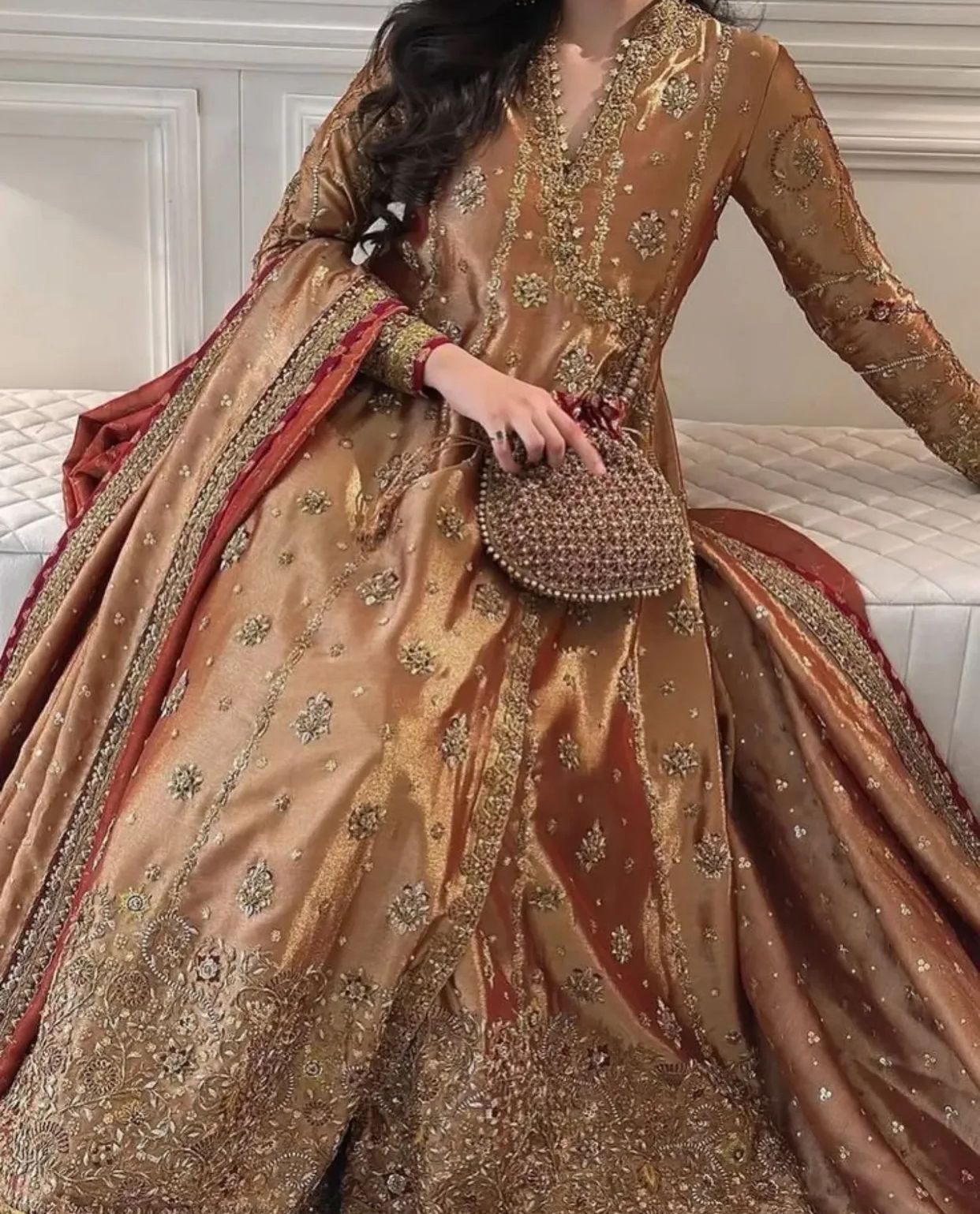 • Dupatta: Zari tissue dupatta with maatha patti handwork and 3-sided embroidery